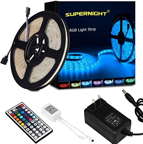 5. SUPERNIGHT LED Light Strip with Remote Controller Power Adaper, Mixed Color Changing RGB Rope Lights, 16.4ft SMD 300leds Flexible Tape DC 12V for Indoor, Bedroom, Car, TV Backlighting